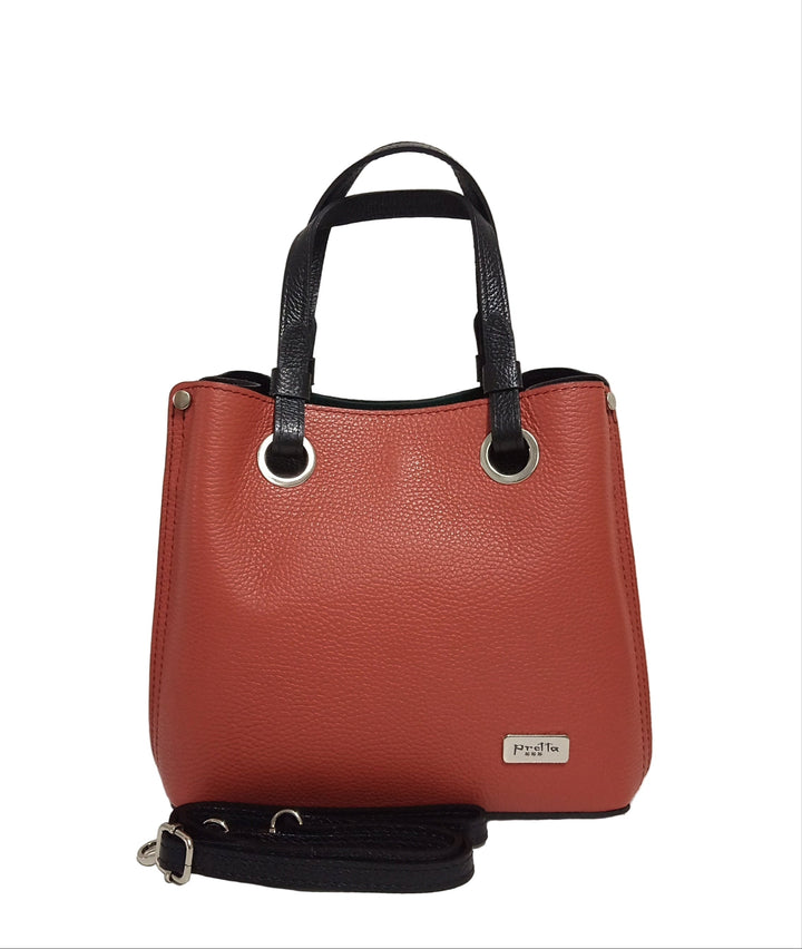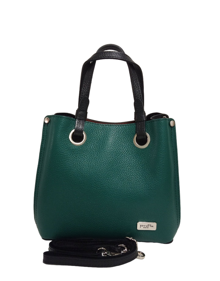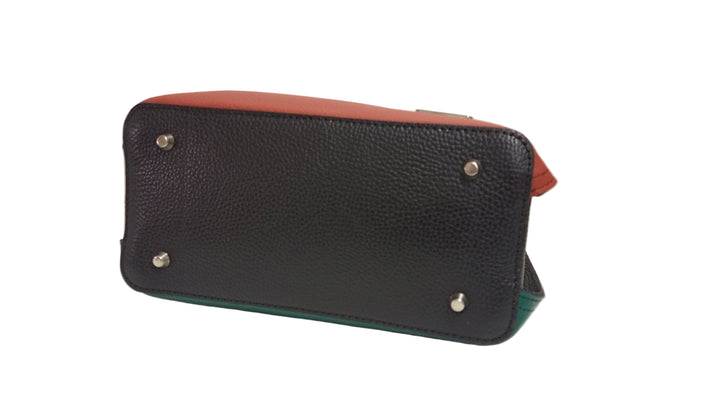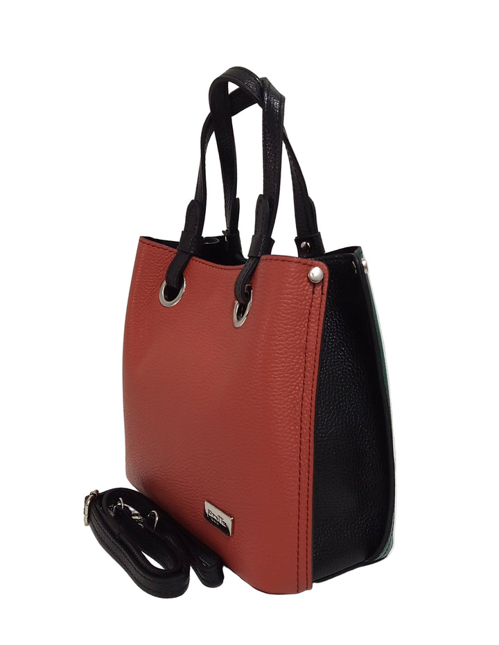 Geantă Piele, 2 FEȚE, Model Pretta- 2401 Caramiziu- Negru-Verde