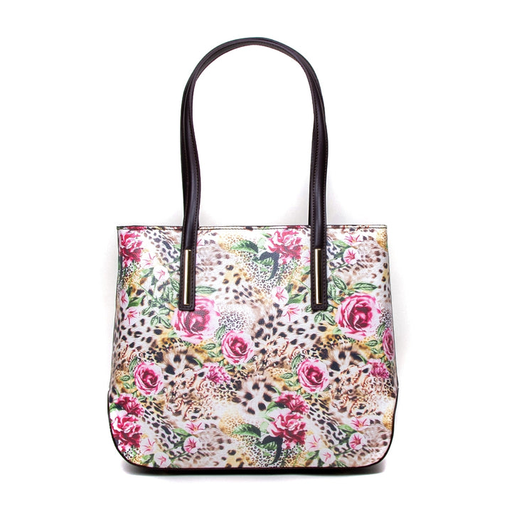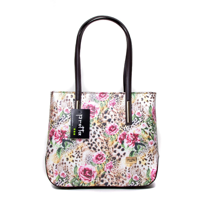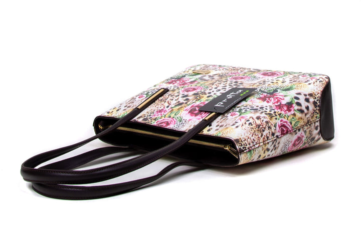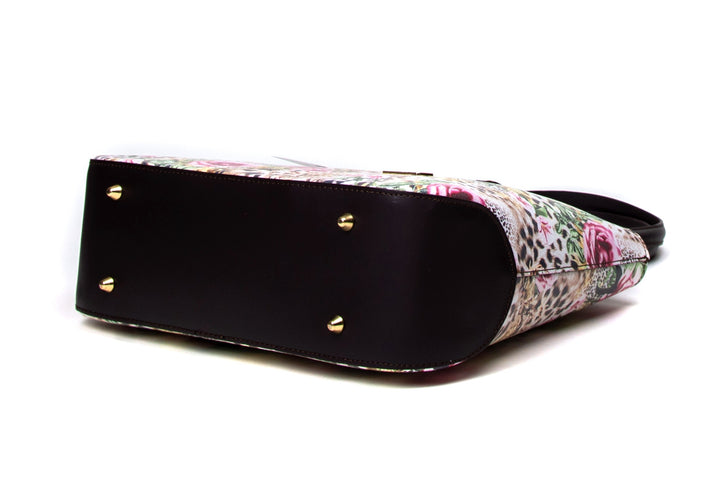 Geanta Piele, Model Pretta- 116 Leopard- Floral-Maron