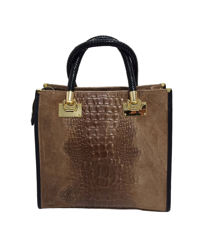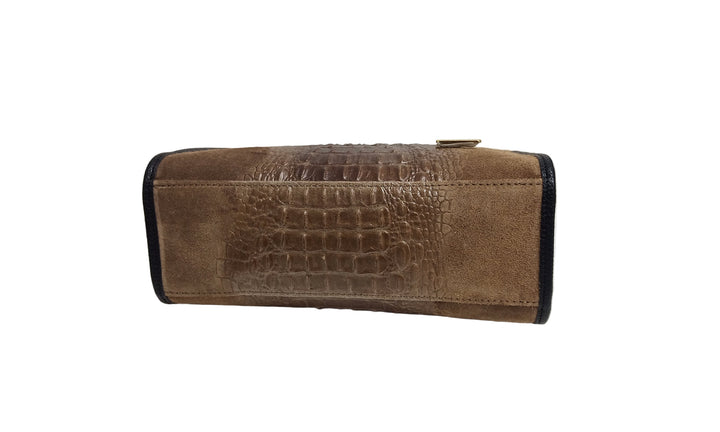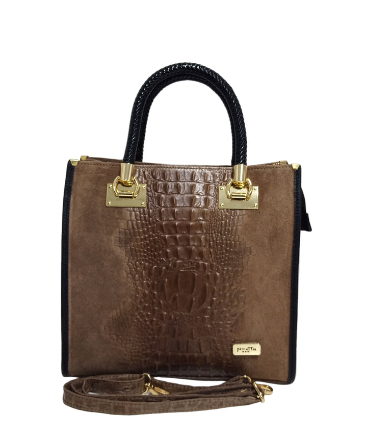 Geanta Piele, Model Pretta 1551 Animal Print Taupe- Negru
