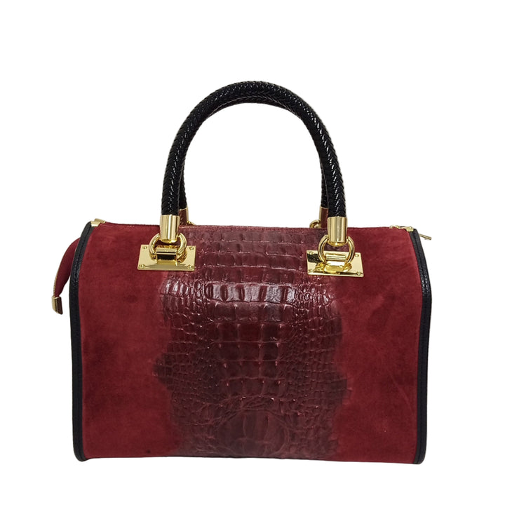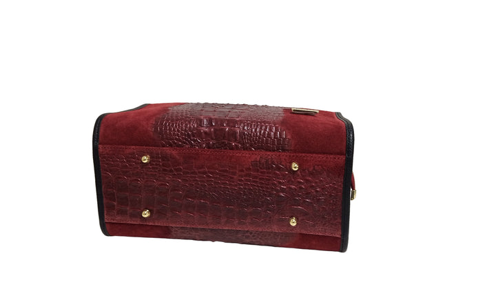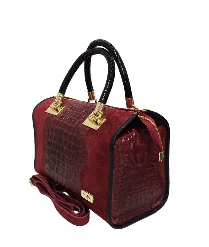 Geanta Piele, Model Pretta 1552 Animal Print Bordo- Negru
