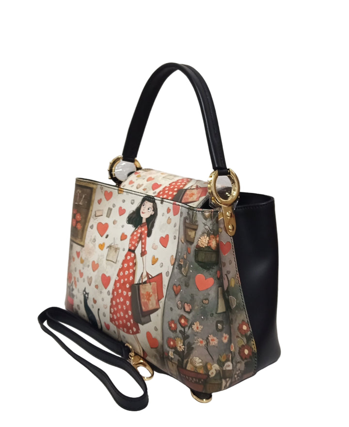 Geanta Piele, Model Pretta- 3555 Print Multicolor Girl