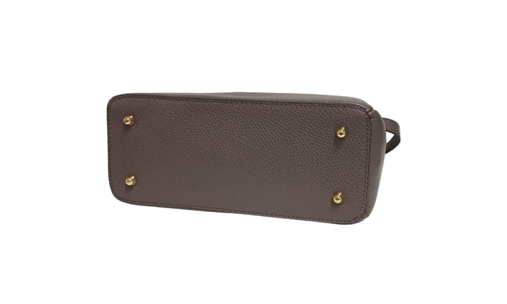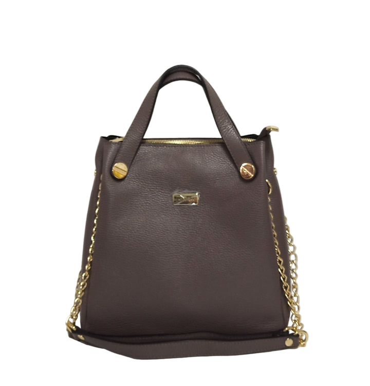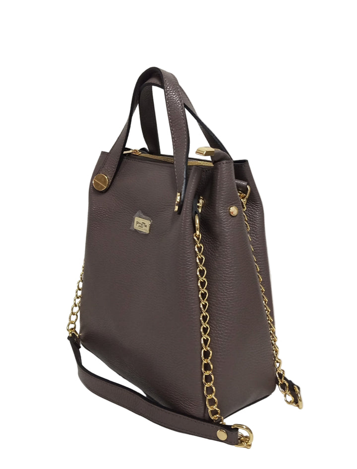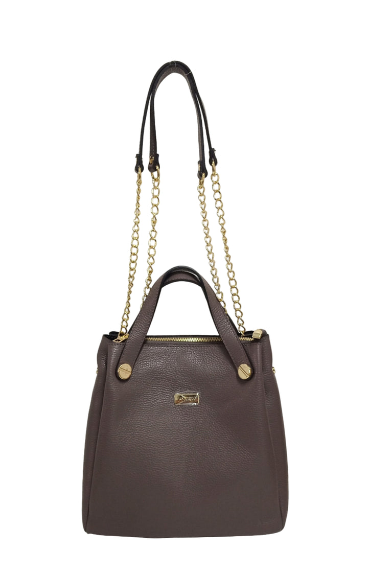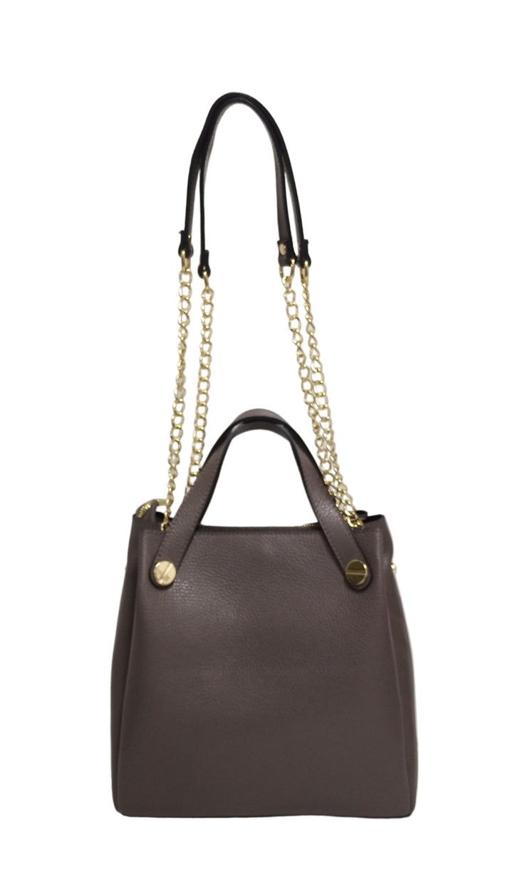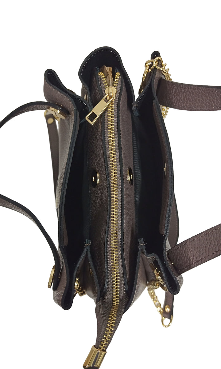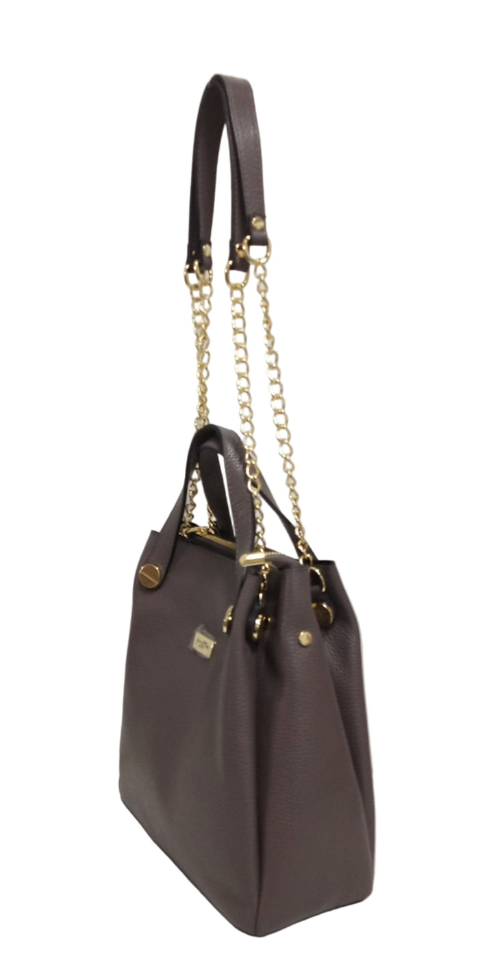 - Prezinta doua barete scurte, fixe, din piele si doua barete mai lungi combinate din piele cu lant metalic auriu,