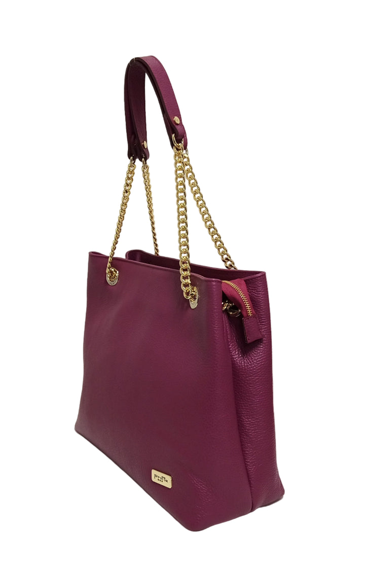 - Prezinta doua barete formate din piele combinata cu lant metalic argintii