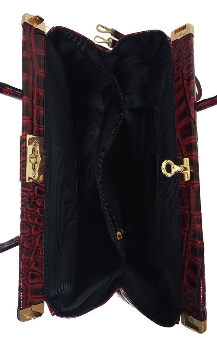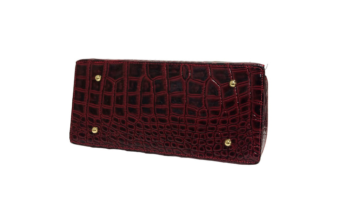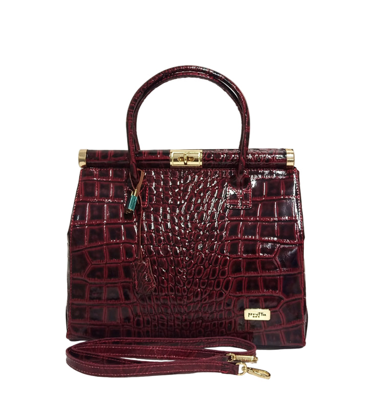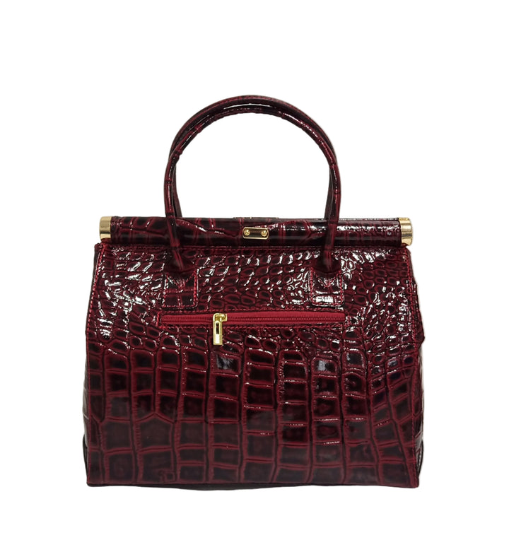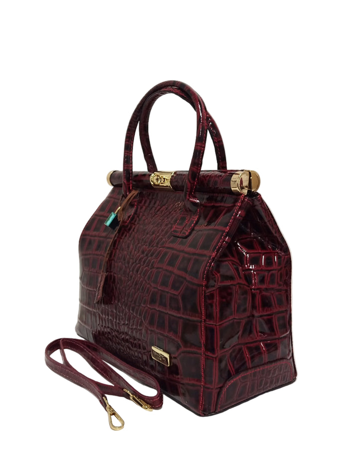 Geanta Piele, Model Pretta- 8173 Croco Print Bordo Lucios