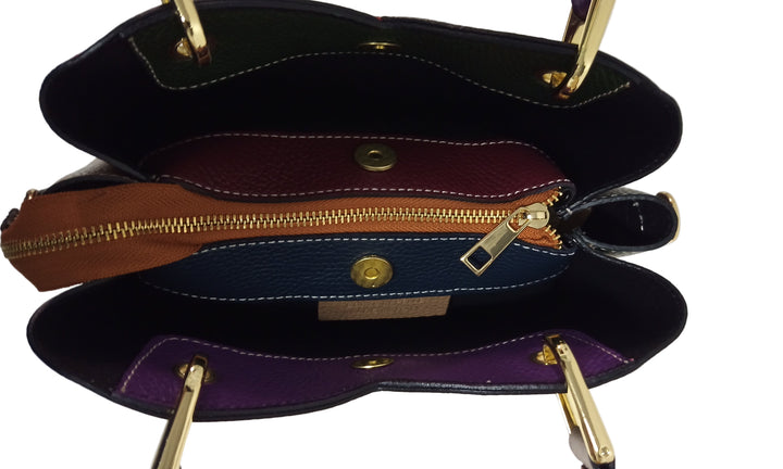 Geanta Piele, UNICAT, Model Pretta- 1240 Multicolor, Mov- Negru