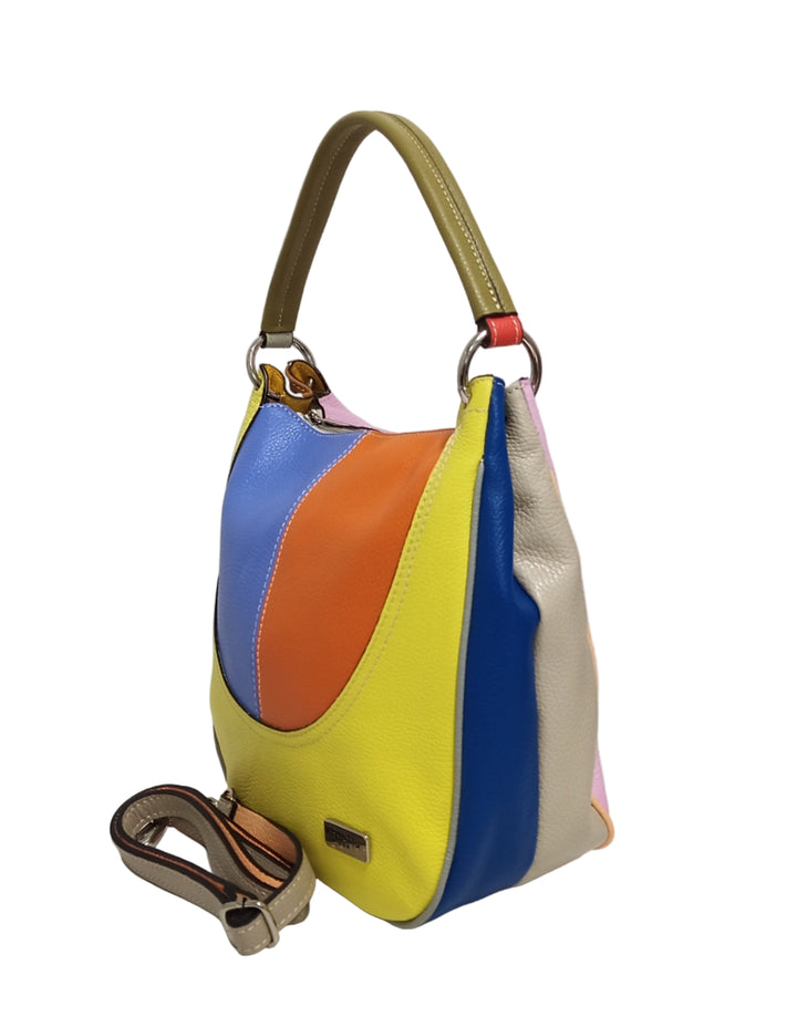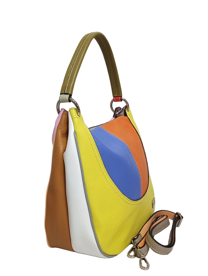 Geanta Piele, UNICAT, Model Pretta- 1645 Multicolor Galben- Roz