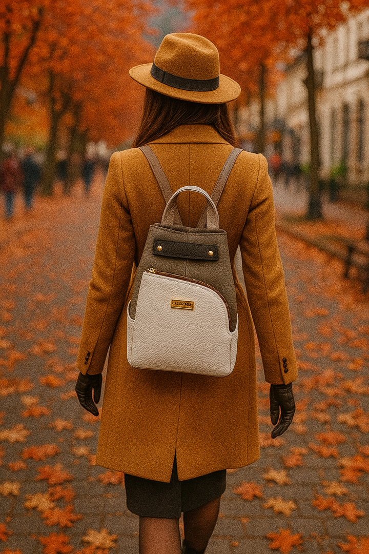 Rucsac Piele, Model Pretta- 177 Multicolor Bej- Taupe- Maron