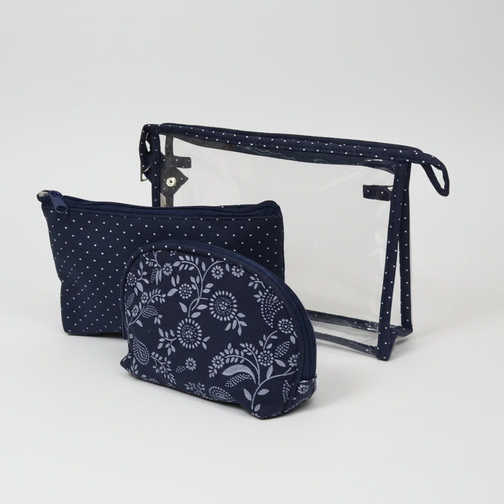 Set cosmetica (3 in 1)- Textil/ PVC- Bleumarin