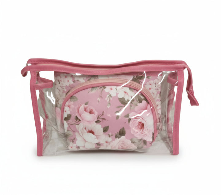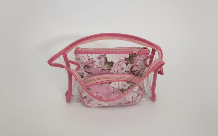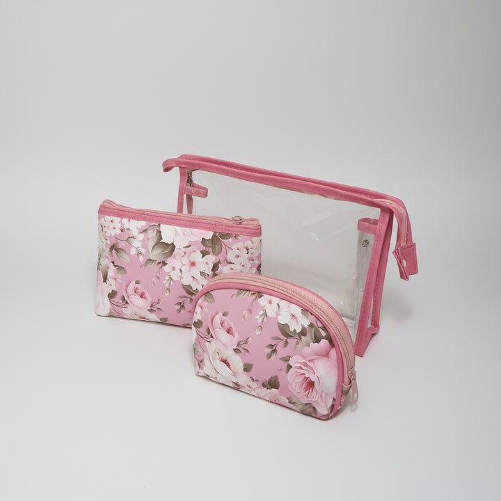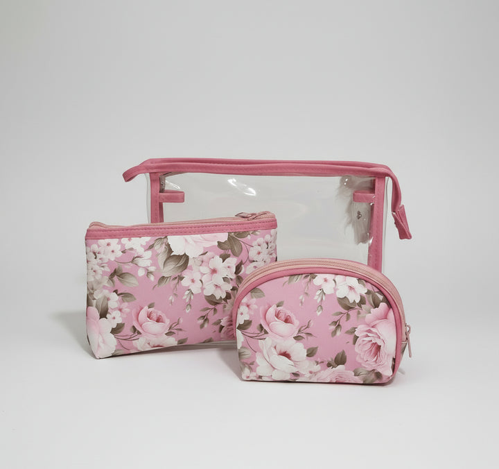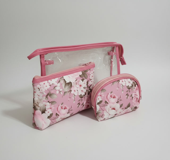 Set cosmetica (3 in 1)- Textil/ PVC-Flor Roz