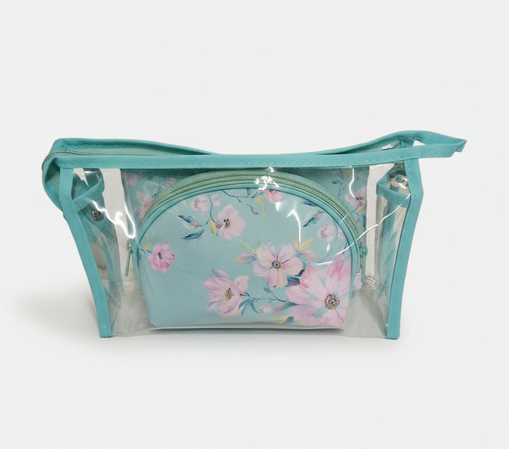 Set cu portofele gen portfard în mărimi descrescătoare din PVC transparent, material textil/ sintetic
