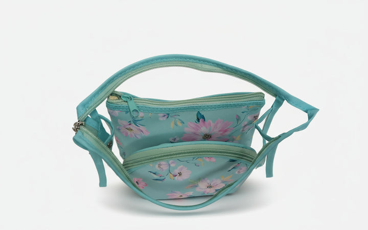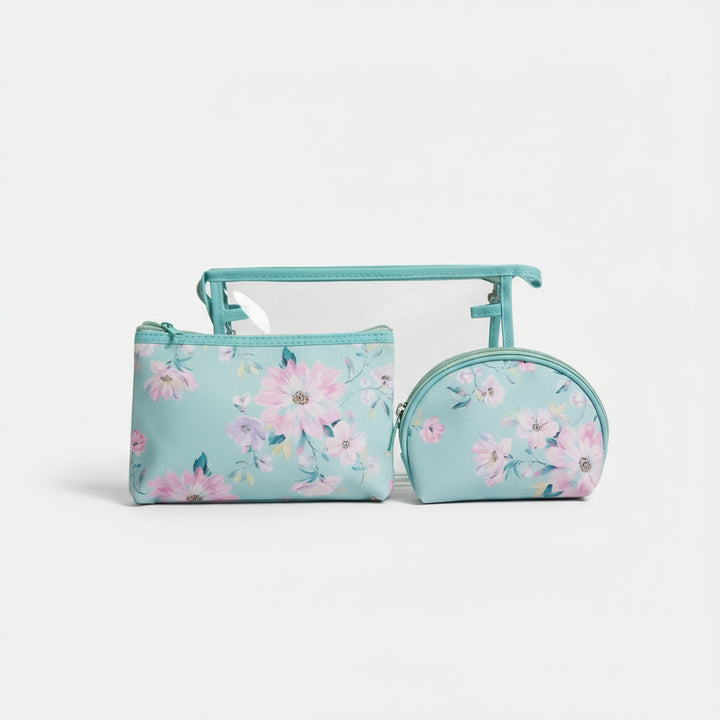Set cosmetica (3 in 1)- Textil/ PVC- Flor Blu