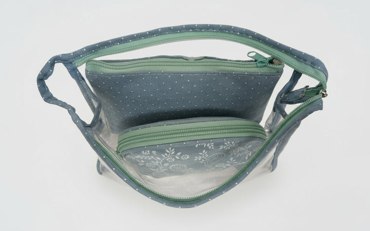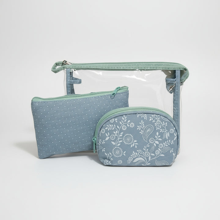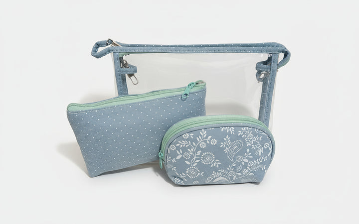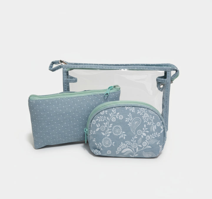 Set cosmetica (3 in 1)- Textil/ PVC- Bleu