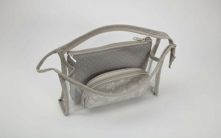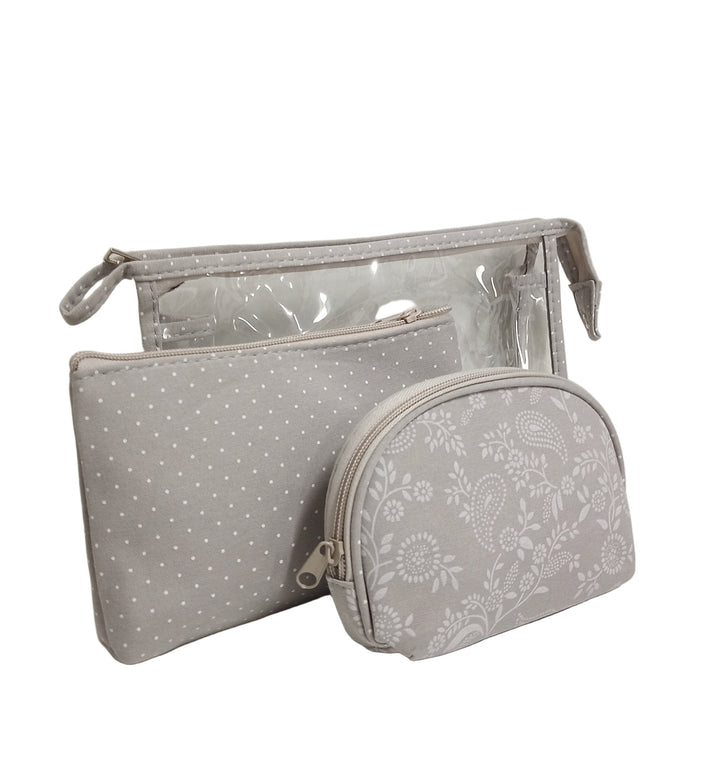 Set cosmetica (3 in 1)- Textil/ PVC- Bej